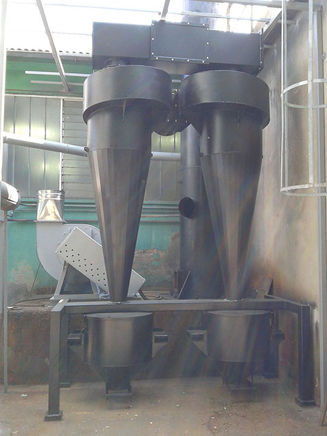 • Cicloni decantatori con contenitori per la raccolta delle polveri